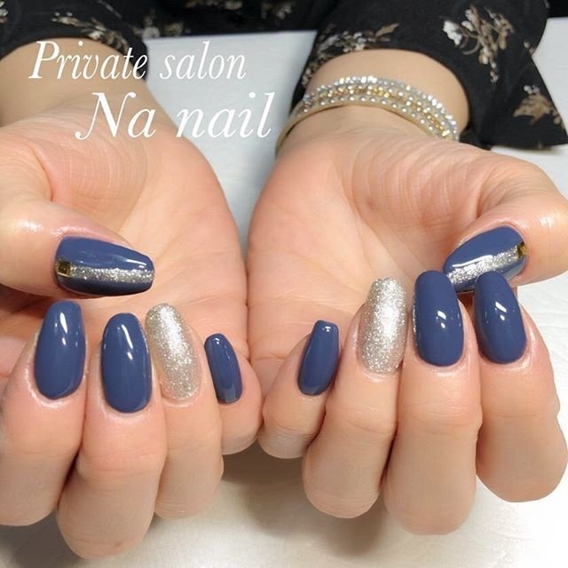 シンプル ラメ ワンカラー ブルー ブラック Nailsalon Huiのネイルデザイン No ネイルブック